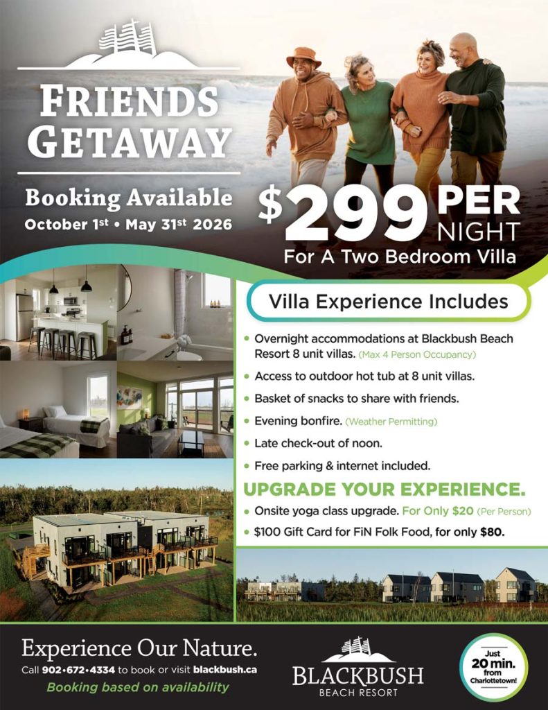Whether you’re running or cheering someone on, Blackbush is the perfect retreat for PEI Marathon Weekend. Start your day with a continental breakfast, and after the race, rejuvenate with our onsite swim spa. Our resort’s peaceful beach and luxurious amenities will help you recharge after the excitement. Shuttle service to the race starting line is available.